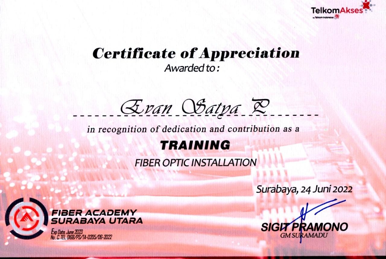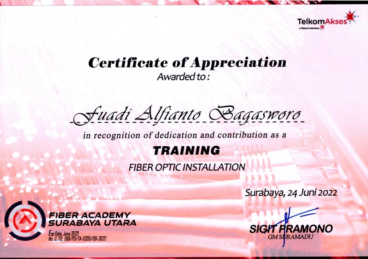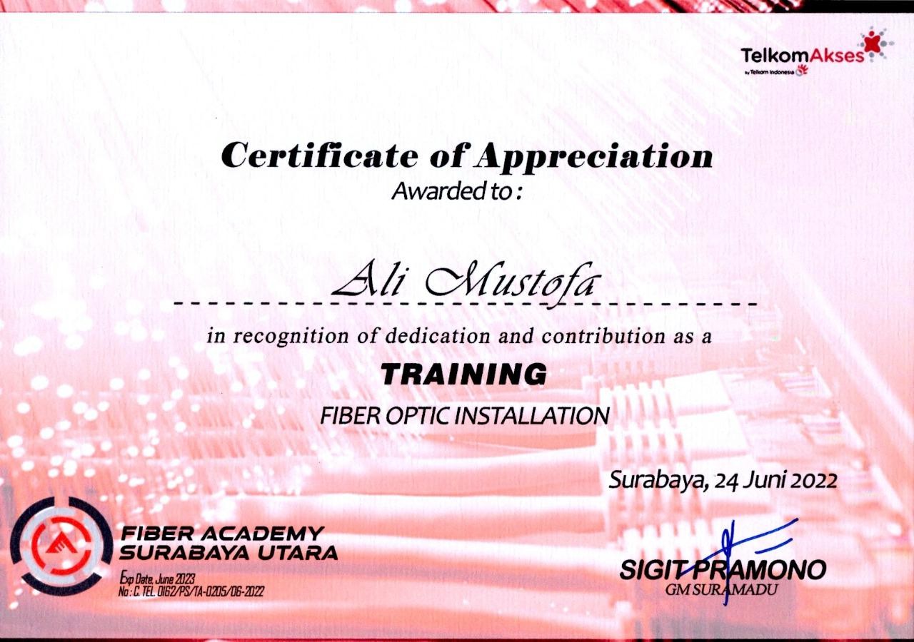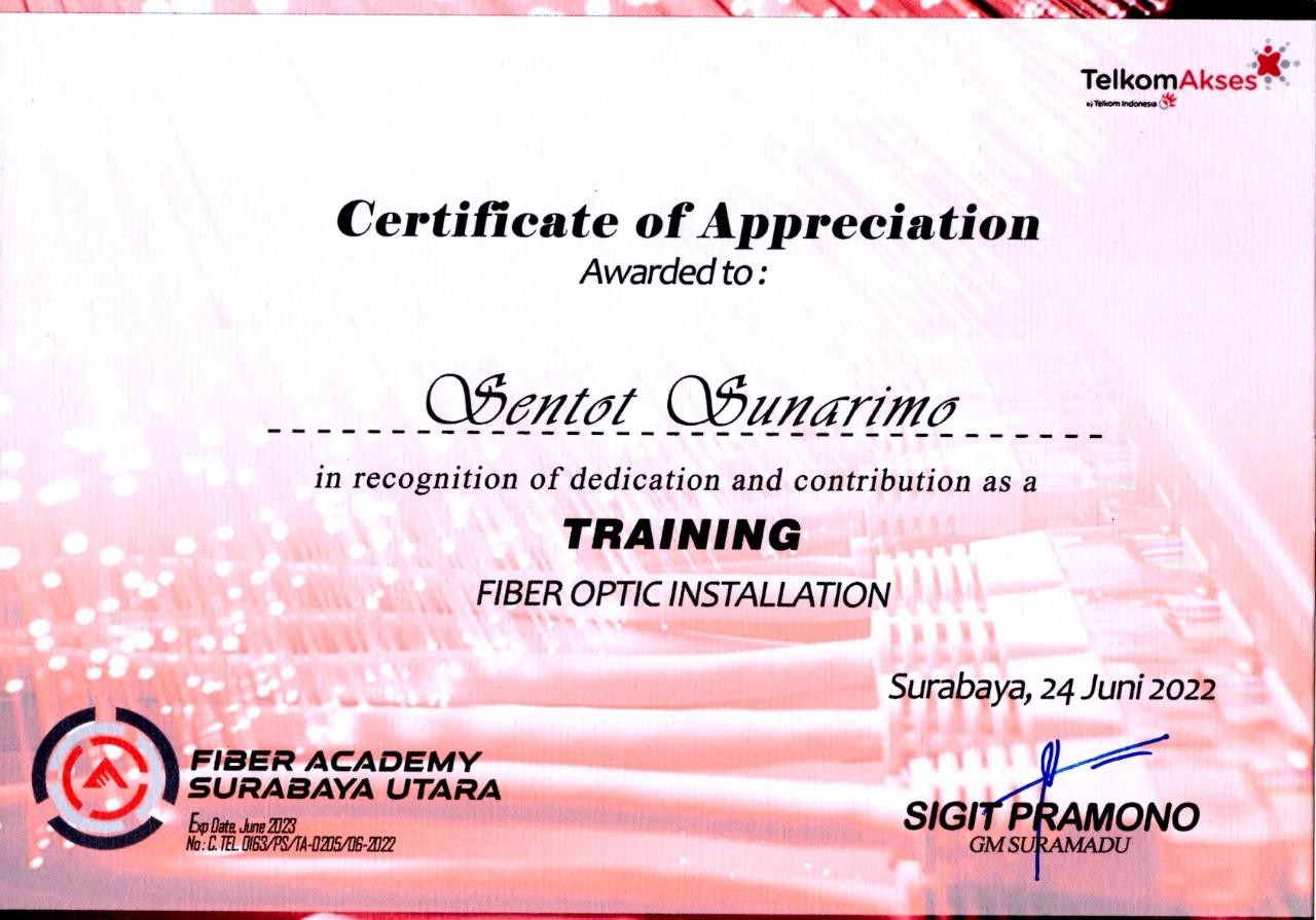 Sertifikat Training Fiber Optic Installation