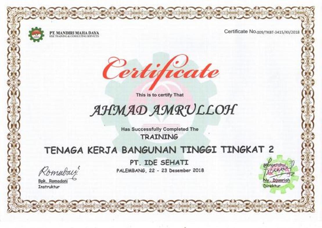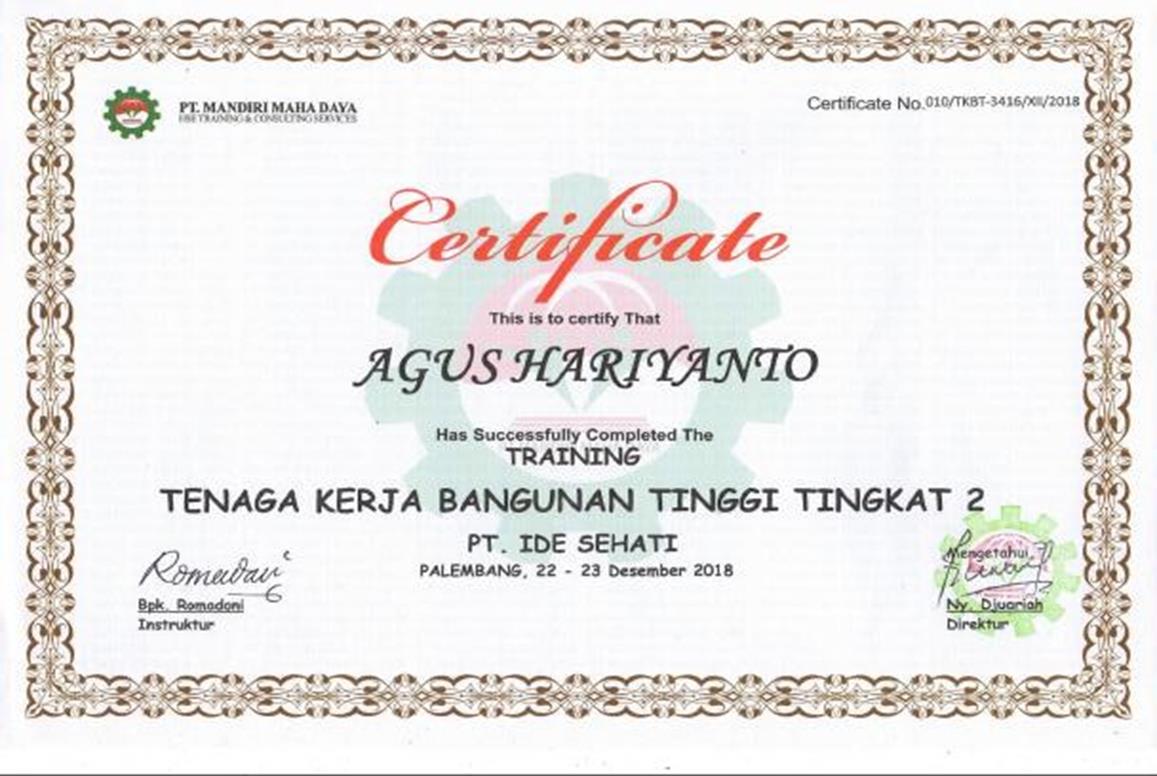 Sertifikat Tenaga Kerja Bangunan Tingkat Tinggi 2