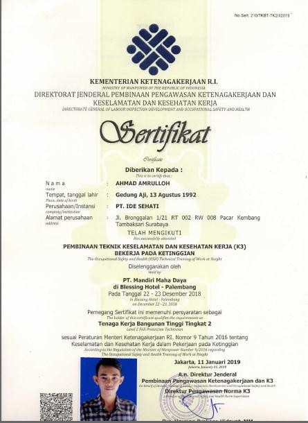 Sertifikat Ahli Keselamatan dan Kesehatan Kerja