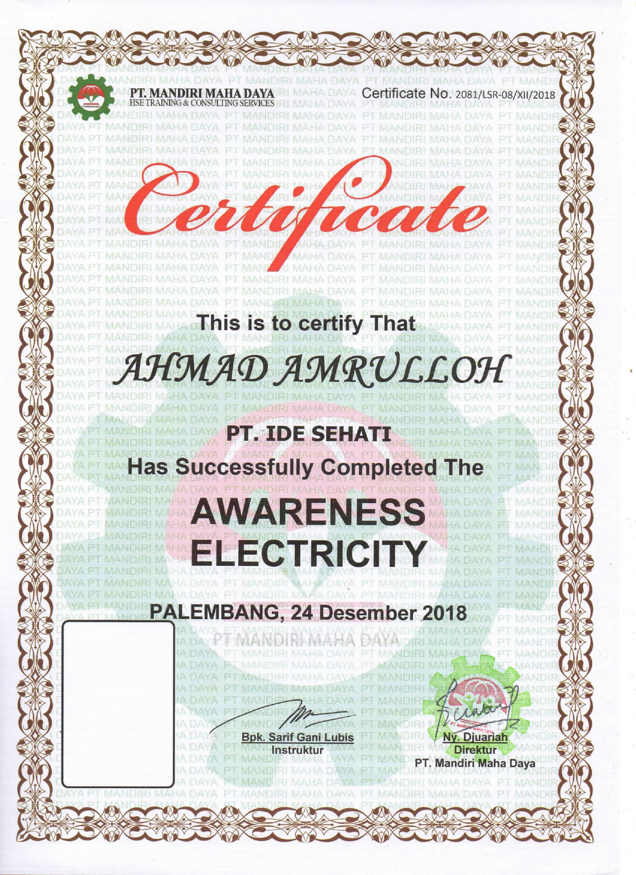 Sertifikat Kelistrikan