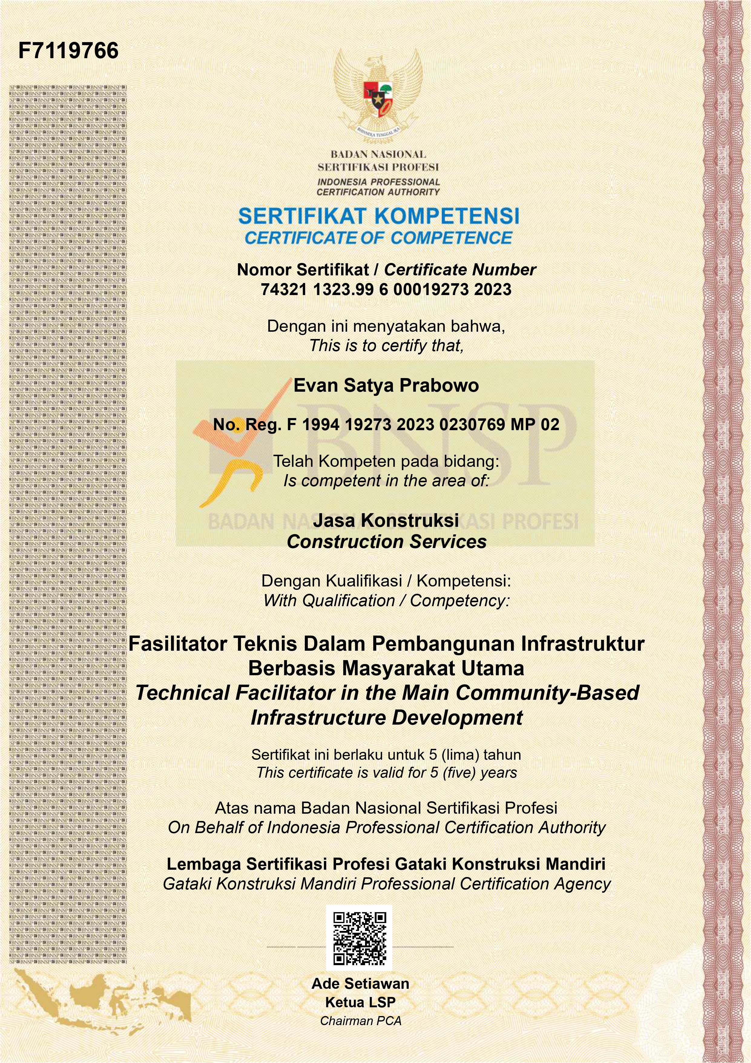 Sertifikat Fasilitator Teknis Pembangunan Infrastruktur