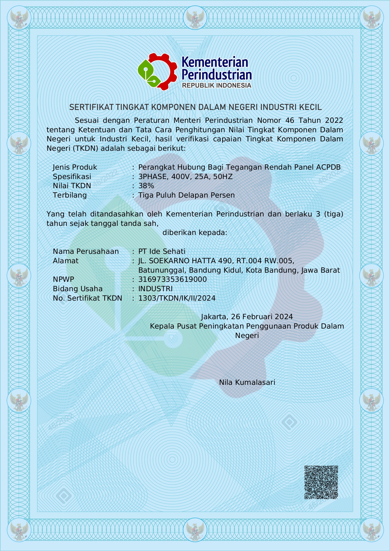 Sertifikat tingkat Komponen Dalam Negeri Industri Kecil